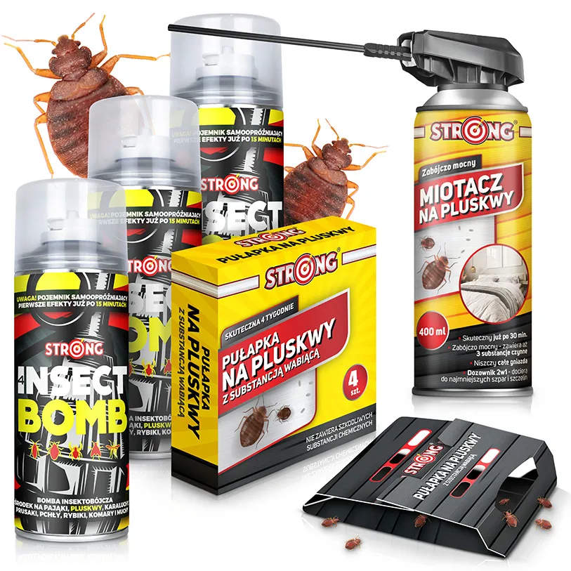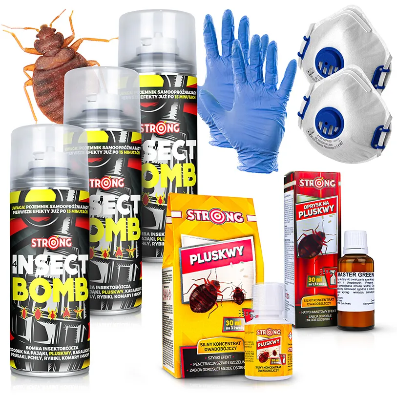 Zestawy na pluskwy są zaprojektowane tak, by substancje czynne mogły dotrzeć do wszystkich zakamarków – ram łóżek, materacy, listew przypodłogowych czy szczelin w meblach. Dzięki temu środki przeciwko pluskwom trafiają dokładnie tam, gdzie owady się ukrywają, zapewniając wyraźnie lepsze efekty. W jednym pakiecie otrzymujesz skuteczne środki na pluskwy i akcesoria pomocnicze, co znacząco skraca czas i podnosi efektywność dezynsekcji. To kompleksowa odpowiedź na problem pluskiew w domu lub mieszkaniu.