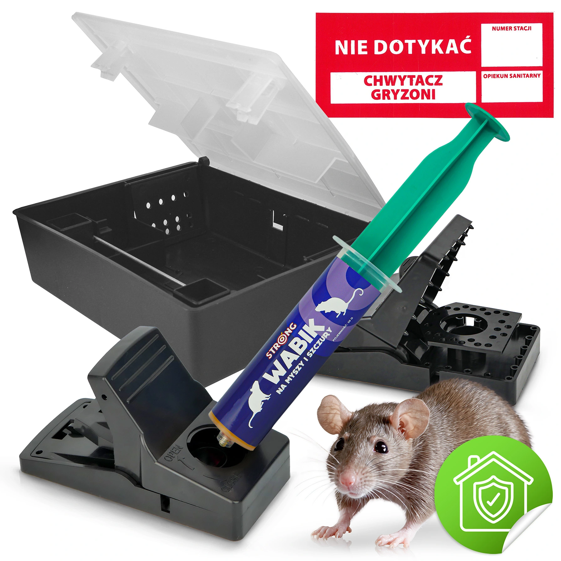 Bezpieczny zestaw na szczury i myszy do domu z dziećmi i zwierzętami. Pułapka na gryzonie + wabik + stacja deratyzacyjna + naklejka informacyjna ZESTAW SAFE