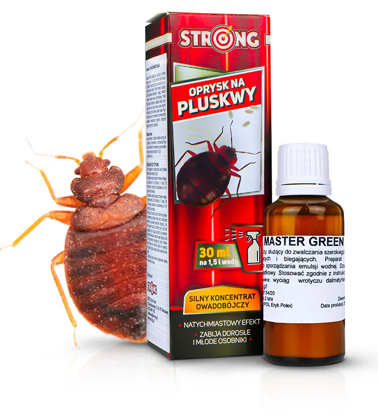Taniej w zestawie!Silny koncentrat STRONG 30 ml na pluskwy. 3 substancje aktywne – szybkie działanie, skuteczne odpluskwianie i ochrona powierzchni.
