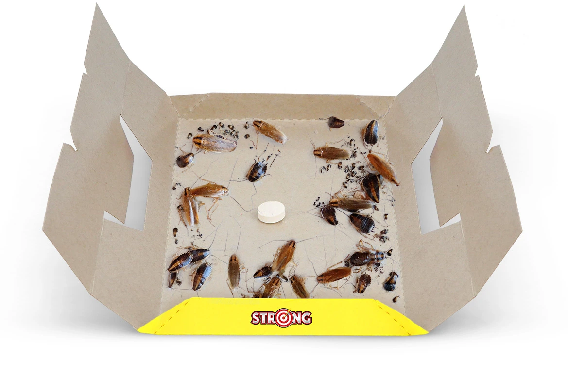 Unikalną cechą, zwiększającą skuteczność zwalczania prusaków i karaluchów, jest tabletka, która silnie przyciąga owady swoim specyficznym zapachem. Owady zwabione do jej wnętrza są skutecznie zatrzymywane za pomocą silnej klejącej powierzchni. Pułapka klejąca STRONG KARALEP jest szczególnie polecana przez profesjonalne ekipy dezynsekcyjne do zwalczania i monitorowania obecności uciążliwych karaczanów, jakimi są prusaki i karaluchy.