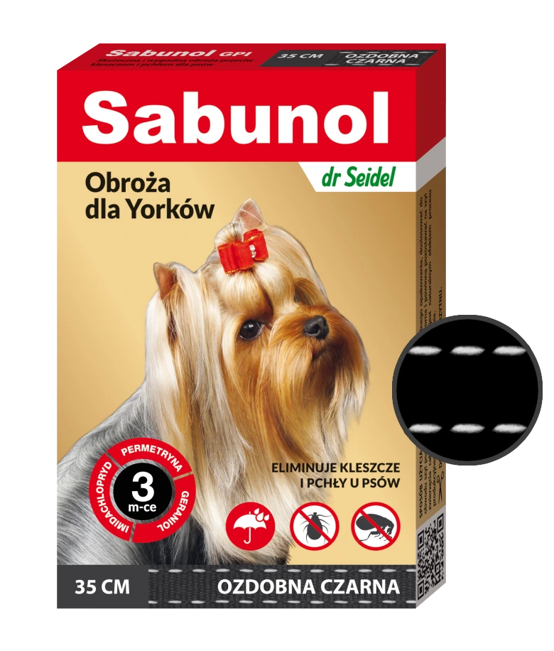 Obroża na pchły i kleszcze dla Yorków 35 cm ozdobna czarna SABUNOL
