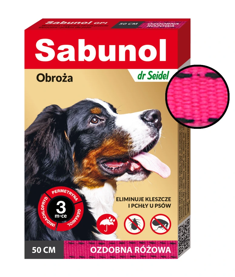 Obroża na pchły i kleszcze dla psów 50 cm ozdobna różowa SABUNOL