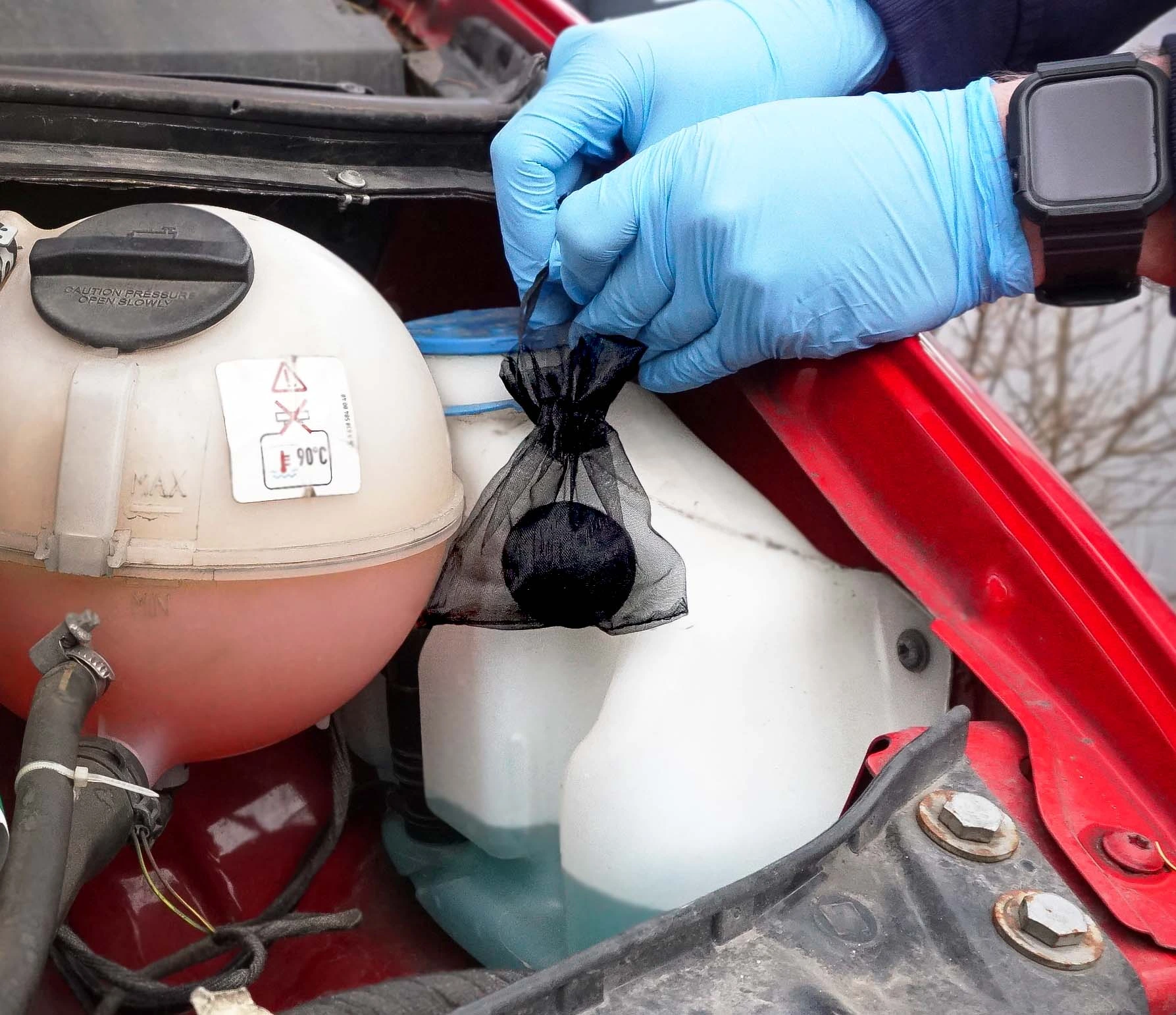 Jeśli po nocy znajdujesz pod maską ślady gryzoni, przegryzione przewody lub maty wygłuszające – zawieś woreczek z KUNA BALL w komorze silnika. Dźwięk stworzy barierę odstraszającą.