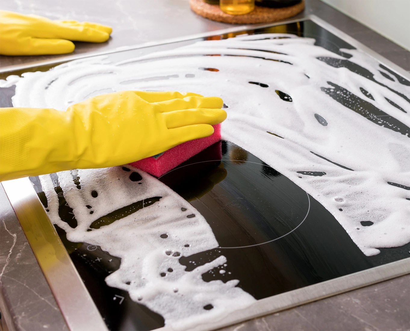 W celu usunięcia zabrudzeń użyj szczotki, gąbki lub drewnianej łopatki dbając o to, by nie porysować powierzchni. Następnie spłucz powierzchnię dużą ilością wody, upewniając się, że środek czyszczący został dokładnie usunięty. Na koniec osusz powierzchnię czystą, suchą ściereczką lub ręcznikiem papierowym.
