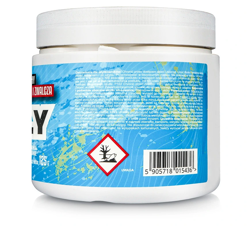 Uwaga: H410 Działa bardzo toksycznie na organizmy wodne, powodując długotrwałe skutki. P102 Chronić przed dziećmi. P273 Unikać uwalniania do środowiska. P391 Zebrać wyciek. P501 Zawartość/pojemnik usuwać do upoważnionego odbiorcy odpadów.