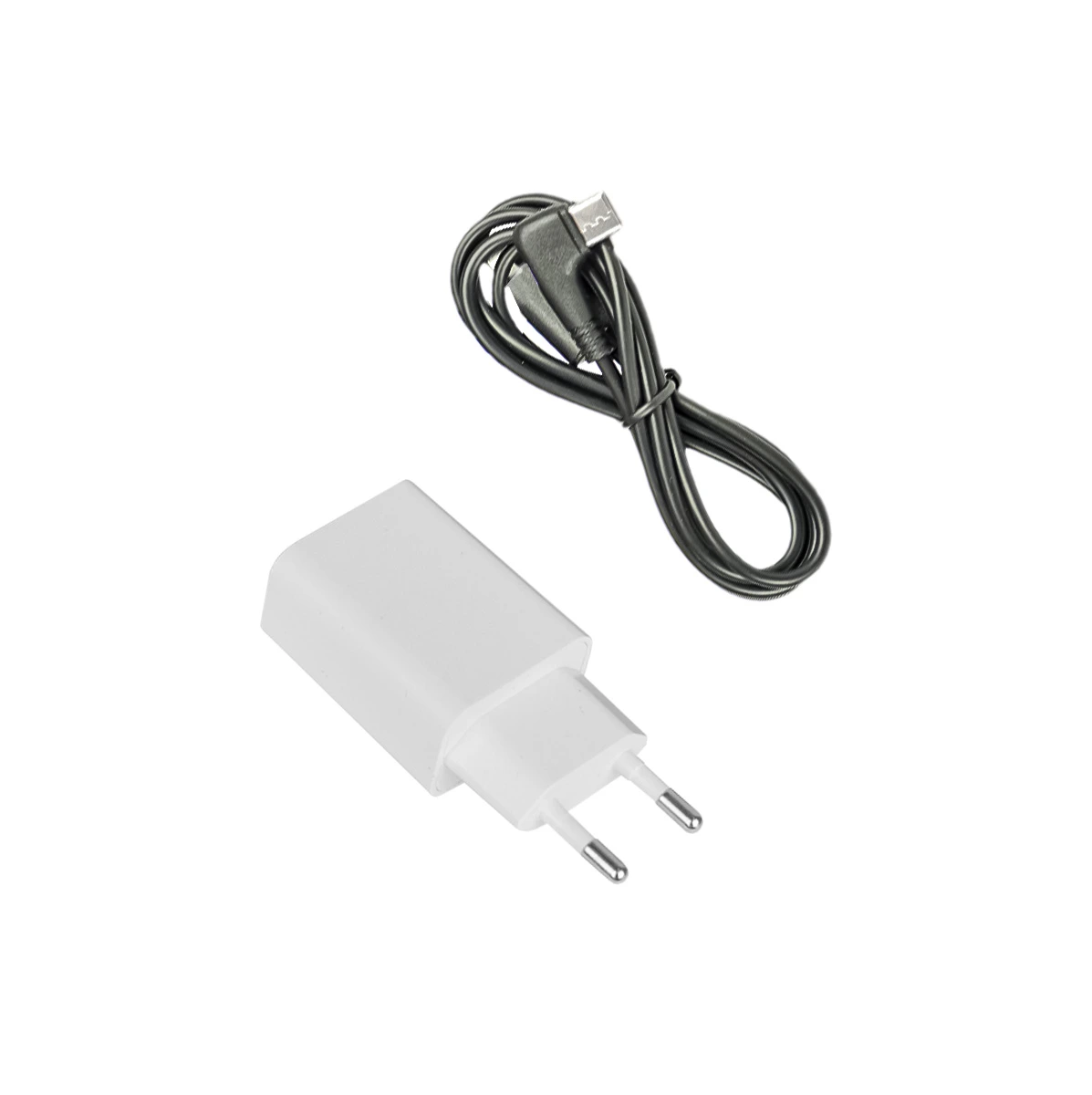 Podłącz urządzenie do gniazdka za pomocą dołączonego kabla i adaptera – niebieska dioda LED na ekranie LCD potwierdzi działanie.