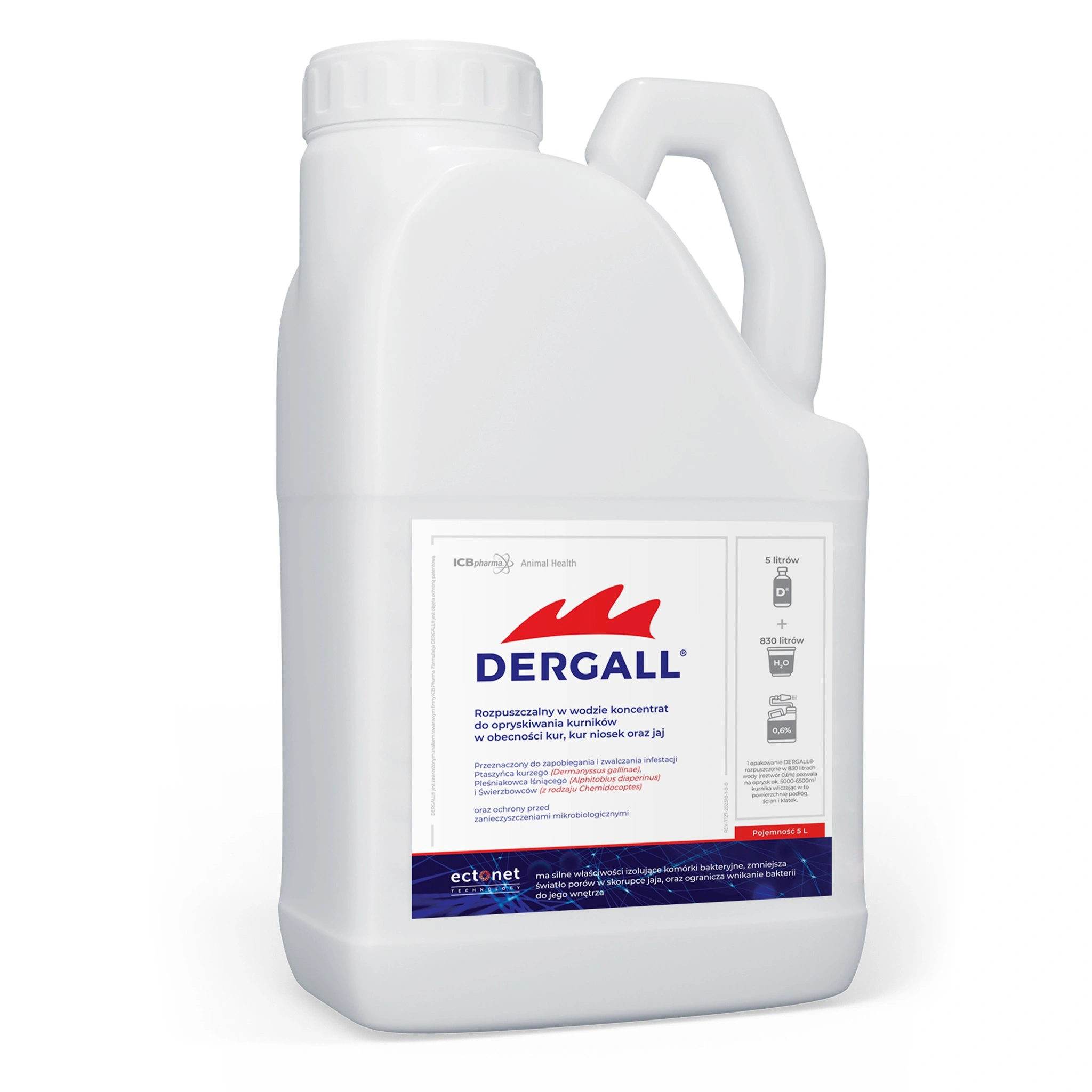 DERGALL® 5 L to nowoczesny preparat na ptaszyńce w hodowli drobiu, który działa bez użycia chemii – nie zawiera substancji aktywnych, nie wnika do organizmu ptaków i ulega biodegradacji.