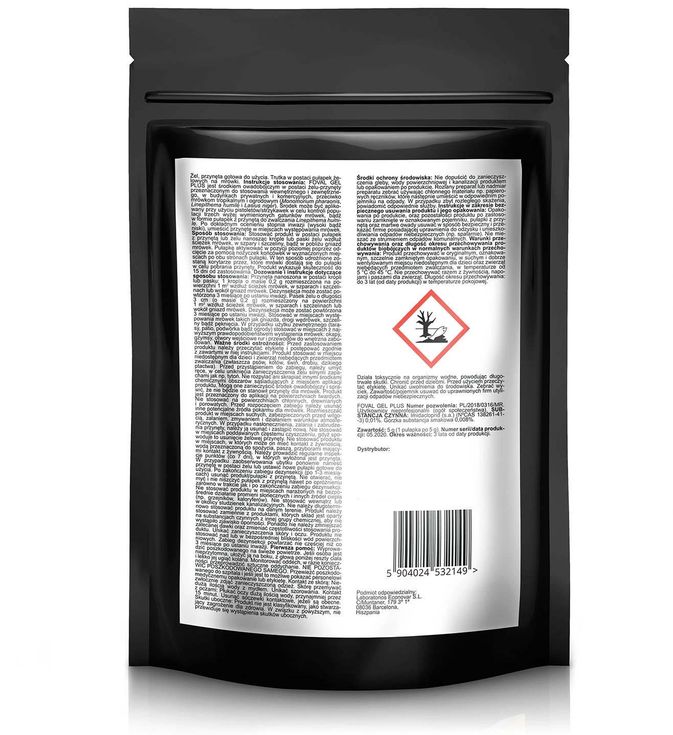Produkt należy używać z zachowaniem środków ostrożności i zgodnie z instrukcjami na etykiecie. Należy prowadzić regularne inspekcje punktów (co 7 dni), w których wyłożona jest przynęta z trutką na mrówki.