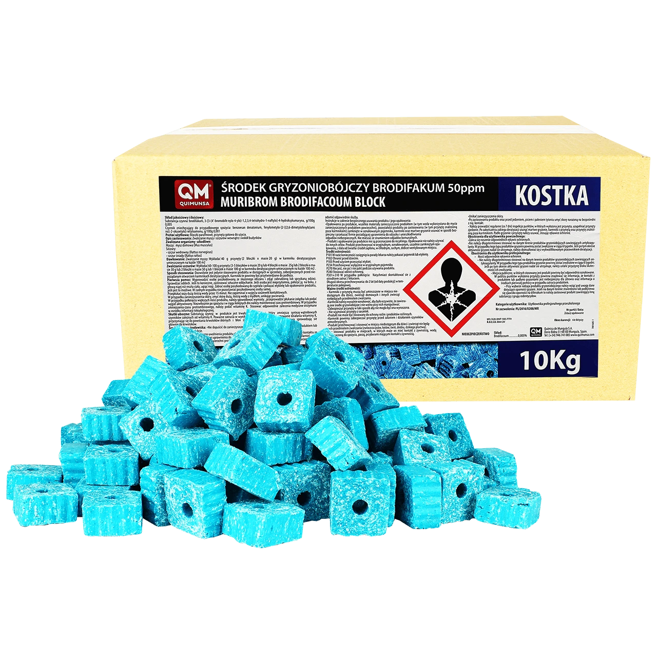 MURIBROM KOSTKA to optymalne połączenie smakowitości i odporności. Jej szorstka powierzchnia sprawia, że dla gryzoni jest to idealny obiekt do gryzienia, a centralny otwór pozwala na umocowanie przynęty na pręcie w oznaczonym miejscu. Zawiera brodifakum - w 100% śmiertelny już po jednorazowym spożyciu. Nie prowadzi do zgonu przed upływem 48 godzin, nawet po spożyciu dużej dawki. Wywołuje wewnętrzny krwotok, ale zawsze pojawia się on późno, co nie przyciąga uwagi gryzoni. Dodatkowo zawiera także gorzką substancję, która zapobiega przypadkowemu połknięciu.