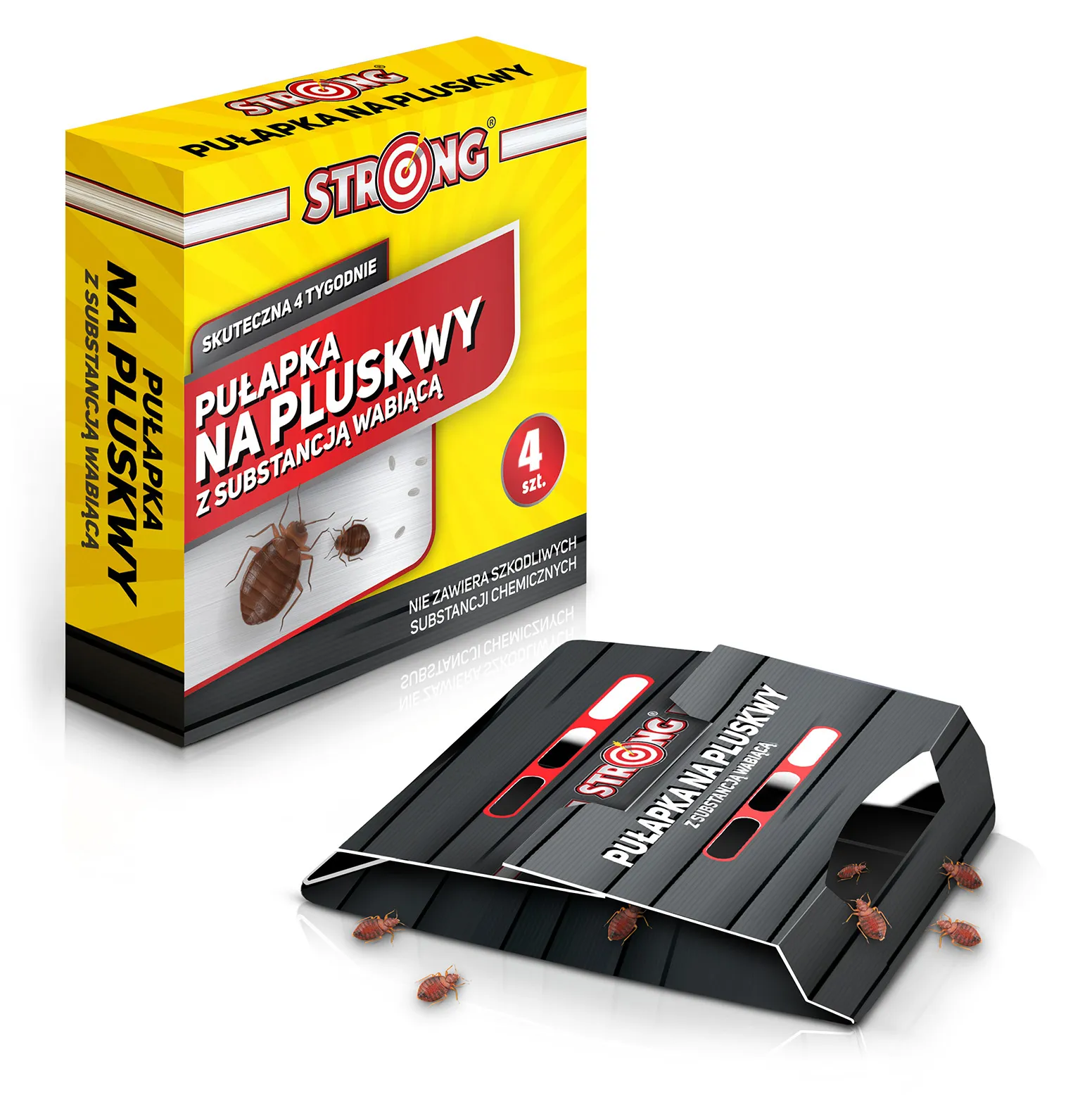 Taniej w zestawie!STRONG – skuteczna pułapka lepowa do monitorowania i odławiania pluskiew 4 szt. w opakowaniu - Innowacyjny lep na pluskwy z mocnym atraktantem – skutecznie wabi owady!