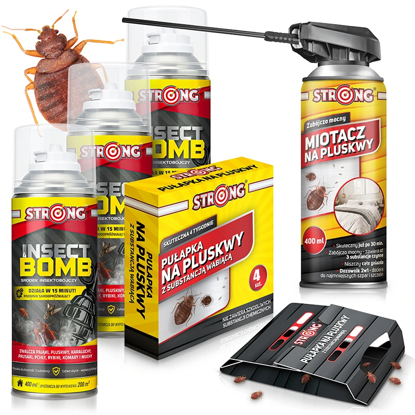 Zestaw 3 ROOM – skuteczne zwalczanie pluskiew w mieszkaniach z preparatami STRONG (3 x fogger, 1 x miotacz, 1 x pułapka 4 szt.)