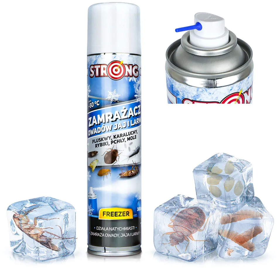 Błyskawiczny zamrażacz owadów, jaj i larw. Wymrażanie pluskiew, karaluchów, pcheł, rybików i moli FREEZER STRONG 300 ml