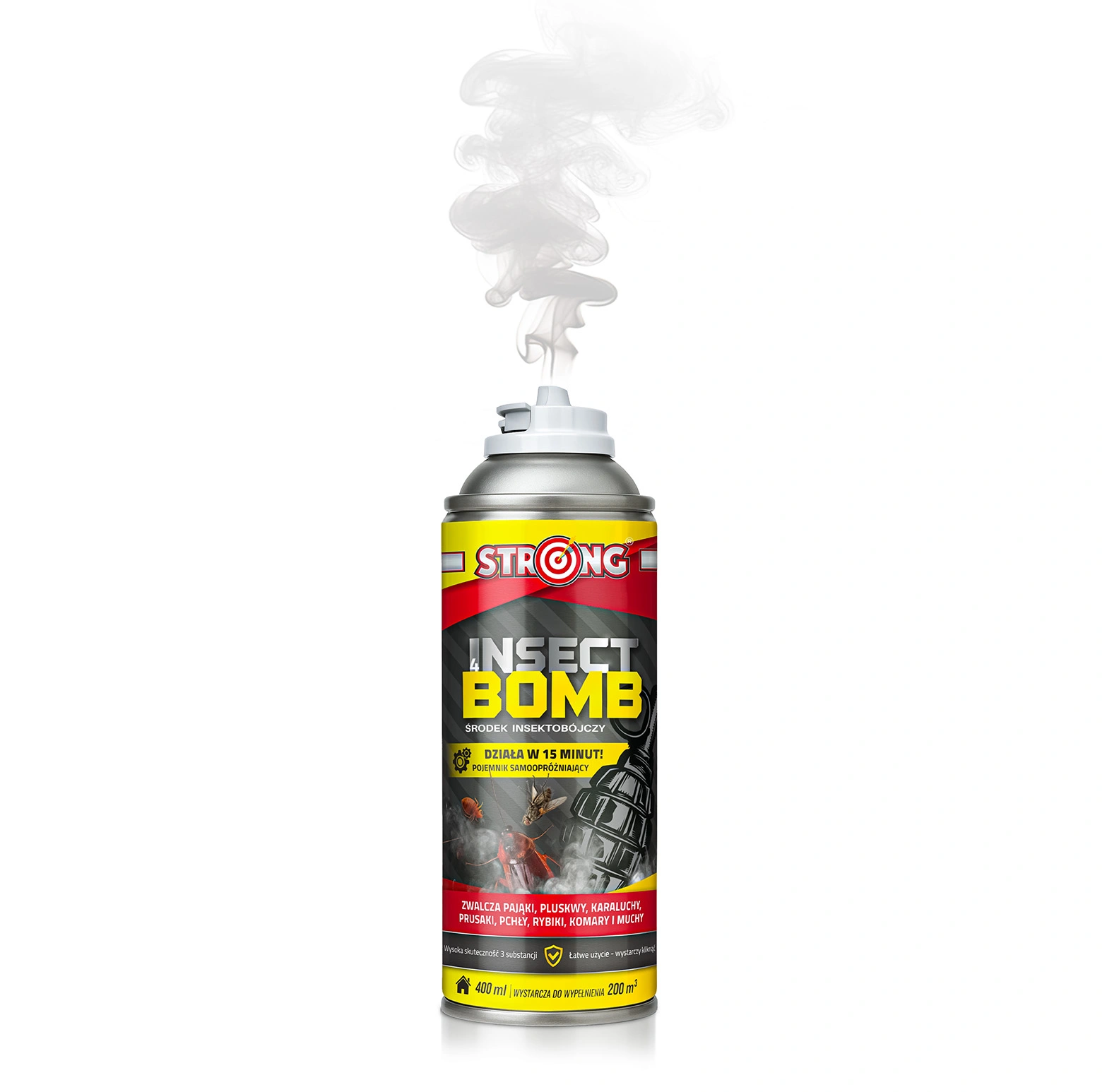 Taniej w zestawie!Gotowy do użycia preparat owadobójczy w postaci aerozolu (bomba - fogger), przeznaczony do zwalczania owadów biegających i latających STRONG INSECT BOMB 400 ml.